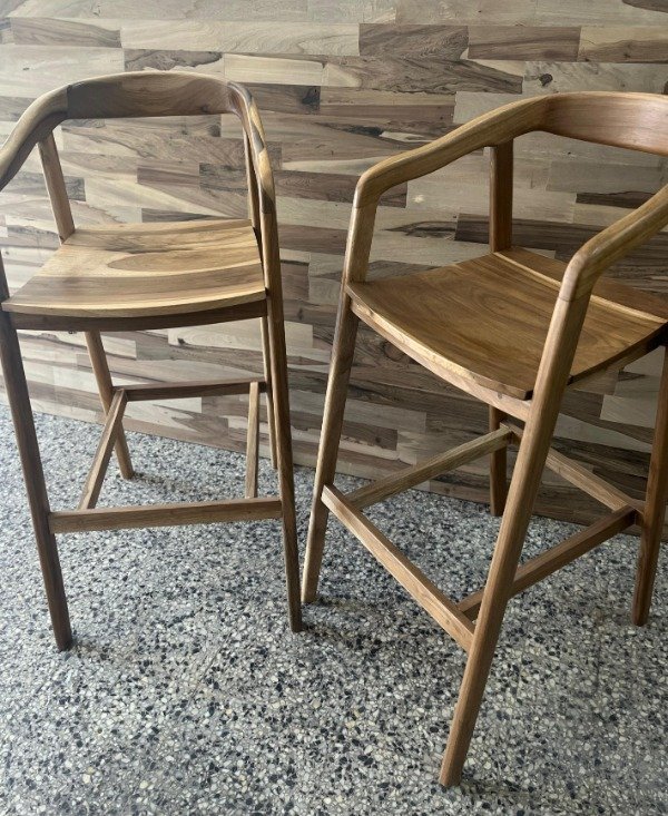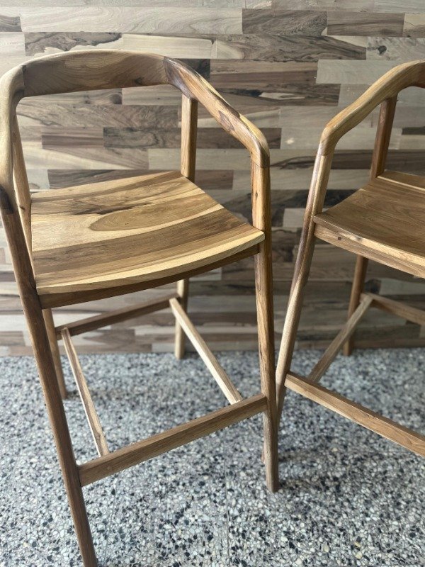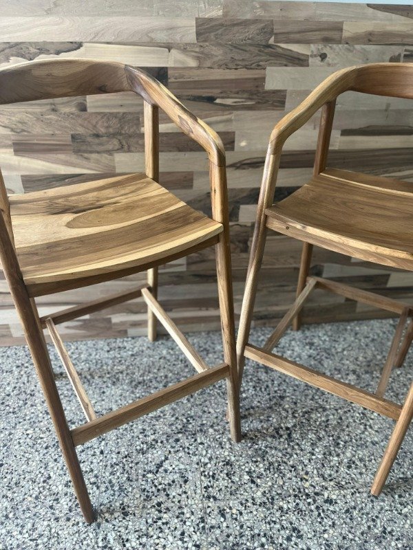 Silla/banqueta alta modelo Bali, construída 100% en petiribí macizo.